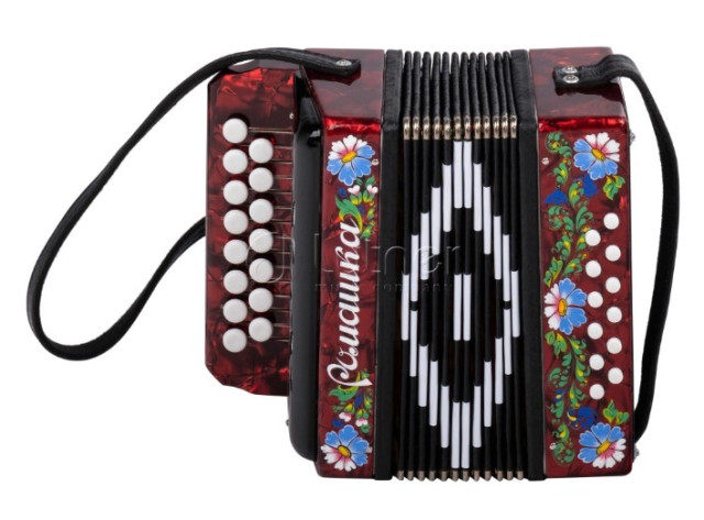 S20XL-C-BD Гармонь "Ромашка" 15х12-I, бордовая, Шуйская гармонь. Одноголосая гармонь без регистра, звукоряд основан на неполной хроматической гамме.