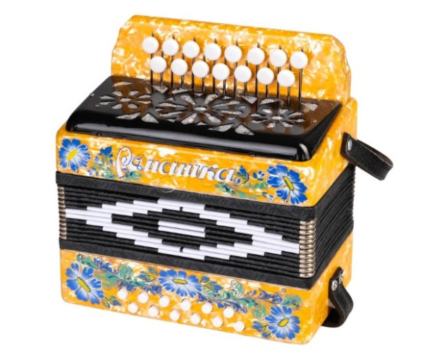 Одноголосая гармонь без регистра, звукоряд основан на неполной хроматической гамме.