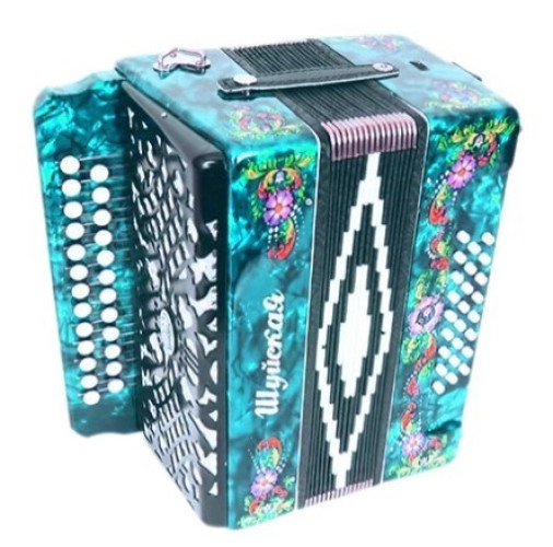Трехголосая гармонь без регистра, звукоряд основан на неполной хроматической гамме.