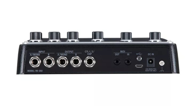 Boss RE-202 — напольная педаль эффекта цифрового дилея с 12 вариациями эха, независимой секцией стереореверберации, регулировкой насыщенности, регулировкой Wow и Flutter и 4 встроенными пресетами.