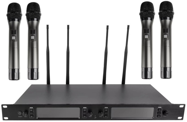 Приемник радиосистемы имеет высокопрочный стальной корпус, который оснащен яркими светодиодными дисплеями и кнопками управления, он поддерживает как ручное программирование канала, так и автоматическое сканирование. На обратной панели расположено четыре разъема для подключения антенн, четыре выхода XLR и смешанный выход Jack 1/4" MIX. Особенностью данной модели является эргономичный рэковый формат, что позволяет легко интегрировать приемник в вашу систему оборудования и установить его в любой стандартный рэковый шкаф.