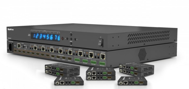 - Матрица 8×8 с 8 зонами HDBaseT и 4 зеркальными выходами HDMI