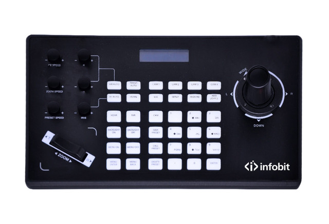 Infobit iControl J10 - универсальный PTZ-контроллер с джойстиком для легкого управления панорамированием, наклоном и масштабированием для любых камер, совместимых с протоколом VISCA / PELCO. Если вы готовы к универсальному, простому в использовании контроллеру с джойстиком для ваших PTZ-камер, не смотрите дальше! Этот контроллер является идеальным решением для всех информационно-битных камер. Просто подключите выбранную вами PTZ-камеру INFOBIT с помощью соединительного кабеля DB9 к 8-контактному разъему mini-din.