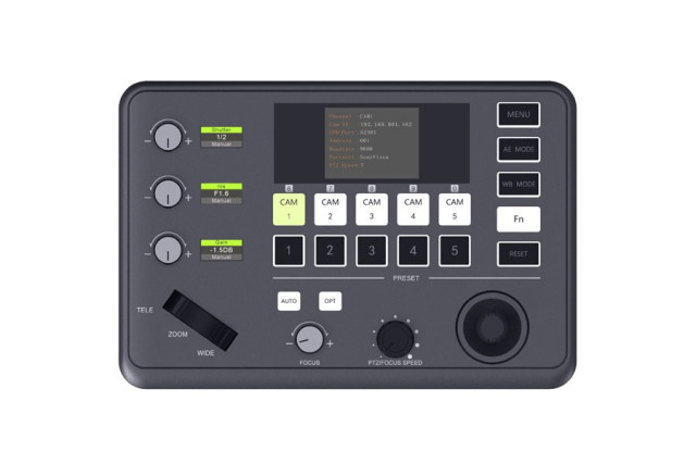 Intrend ITPTZ-RP-M - пульт управления. Предназначен для PTZ-камер, поддерживает протоколы VISCA, UDP, PELCO P/D и интерфейсы RS422/RS485/RS232/IP(UDP).