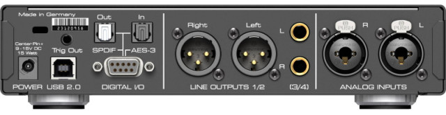 Для цифровых подключений интерфейс предлагает пару оптических входов/выходов SPDIF/ADAT и коаксиальные SPDIF (RCA) и AES I/O (XLR) через входящий в комплект соединительный кабель. Кроме этого, RME ADI-2/4 Pro SE поставляется с беспроводным пультом дистанционного управления, кабелем с девятиконтактным разъёмом D-sub на двойной XLR и двойной RCA, а также блоком питания на 40 Вт. Выходы Balanced Line и Balanced Phones можно использовать одновременно, даже с разными источниками/сигналами, а балансный TRS сзади может питаться от сигнального тракта Line 1/2 или Phones 3/4, что открывает доступ для обработки инсерт-эффектов во время процесса мастеринга.