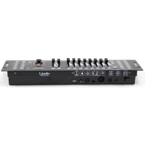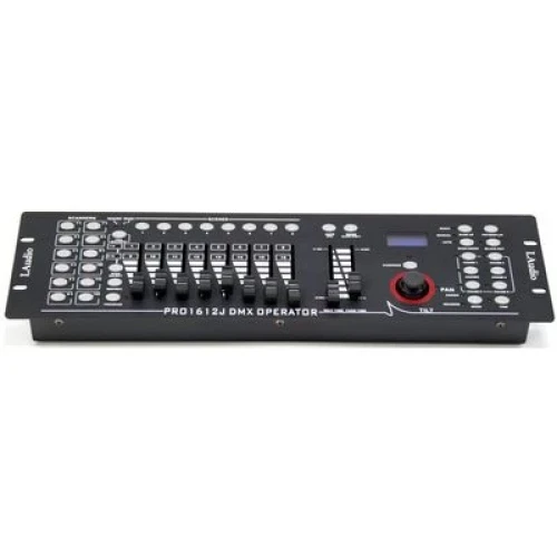 Контроллер может работать с 12 устройствами по 16 каналов каждое и поддерживает протоколы DMX512 и RDM. Для управления здесь доступно до 30 банков, в которых содержится по 8 программируемых сцен. Для управления устройством здесь есть ЖК-дисплей. Встроенный микрофон имеет возможность регулировки чувствительности. USB разъем позволит подключать внешний флеш-накопитель для создания резервных копий и обновлений прошивки. Отображение данных DMX каналов можно настраивать в процентах или в числовом значении. На задней панели расположены разъем для подключения адаптера питания, Midi разъем, выход DMX (XLR, 3-pin, мама), USB type A, линейный аудиовыход и Midi разъем для подключения дым машины. Устройство запоминает последние настройки при отключении питания. Протокол RDM позволяет устанавливать адреса приборам через контроллер.