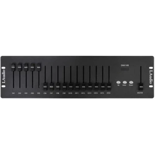 Это компактный 16-канальный DMX-контроллер, идеально подходящий для управления небольшими световыми установками. Он оснащен 16 отдельными фейдерами каналов, что обеспечивает точный и интуитивно понятный контроль над каждым световым прибором. В дополнение к этому, имеется один мастер-фейдер, который позволяет мгновенно регулировать яркость всех подключенных устройств одновременно. Для подключения к приборам используется стандартный 3-контактный разъем XLR.