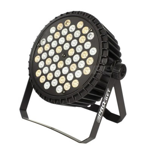 PAR PROCBET PAR LED 54-3 W — это светодиодный прожектор, который используется для сценического и архитектурного освещения. Его название расшифровывается так: PAR (от англ. parabolic reflector) — тип отражателя, используемого в лампе; LED — светодиодный; 54 — количество светодиодов; 3 W — мощность каждого светодиода.