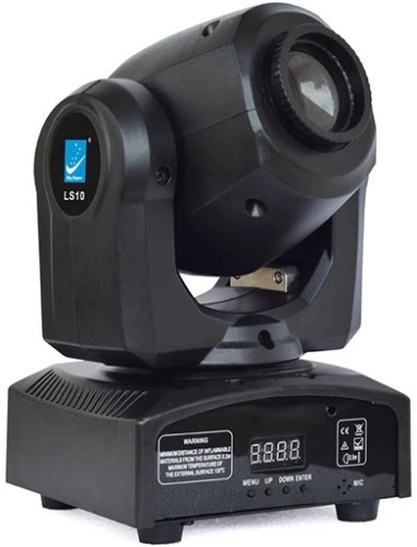 Также имеется 2 эффекта призмы, одна вращающаяся 6-фасеточная круглая призма, диммер от 0 до 100% и моторизированный фокус. Прибор работает в режимах звуковая активация, авто, режим шоу или DMX, а также Stand Alone и Master/Slave. Доступно 6/18 DMX-каналов. Для удобства управления имеется дисплей LCD.