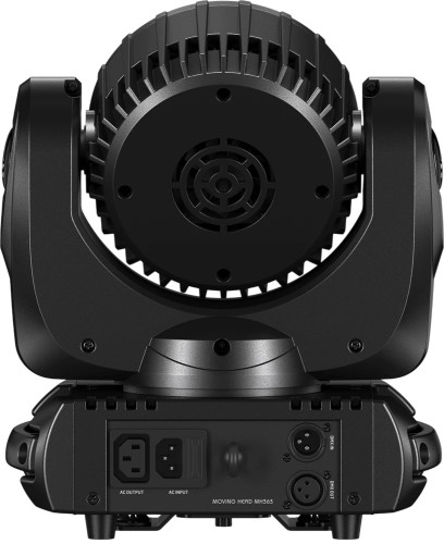 Данная модель за счет обилия функций и стильного дизайна станет отличным дополнением для любой концертной площадки. Здесь есть 36 светодиодов RGBW мощностью по 3 Вт, обеспечивающих яркий, насыщенный свет. Управлять прибором можно как непосредственно с лицевой панели (дисплей и 4 кнопки), так и с помощью внешнего оборудования по DMX или с других приборов в цепи, а также возможен автоматический контроль звуком через встроенный микрофон. MH363 поддерживает стробоскоп и эффект затвора. На задней панели есть вход и выход DMX с коннекторами XLR. Еще сзади предусмотрены вход и выход для питания.