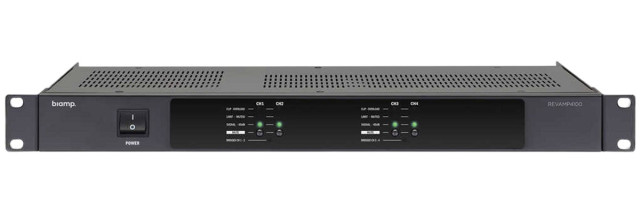 Biamp REVAMP4100 - 4-канальный профессиональный цифровой усилитель мощности, обеспечивающий 100 Вт на 4 Ом - каждого канала, а в режиме мост - два канала по 225 Вт на 8 Ом.