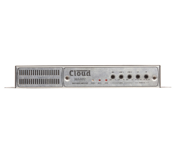 Cloud MA 40T - мини-усилитель, обеспечивающий моно выход 40 Вт при 25 В / 70 В 100 В. Он оснащен входом для пейджингового микрофона с контактами доступа, полезной опцией линейного входа 70/100 В, еще двумя линейными входами и опцией входного порта служебного порта, позволяющей подключать настенный входной модуль LM-2 и новый Cloud BT-1F Bluetooth. Аудио Беспроводной модуль ввода.