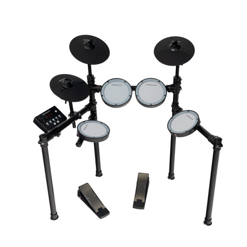 Rockdale Storm Mesh 1 сочетает современные технологии и универсальность. Сетчатые пэды обеспечивают реалистичный отскок палочки и акустический комфорт благодаря снижению шума. Двухзонные пэды и тарелки с функцией глушения позволяют добиваться высокой динамики и реалистичности игры. Прочная стальная рама на 4 стойках гарантирует устойчивость, а малый барабан и томы легко регулируются по высоте и углу наклона, подстраиваясь под предпочтения музыканта.