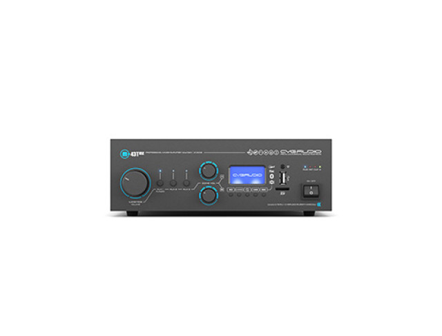В CVGAUDIO M-43Tmz встроен источник музыкального сигнала, состоящий из MP3/FLAC/WAV плеера, воспроизводящего контент в указанных форматах с microSD card или USB флешь накопителя объемом до 36Gb, качественного BLUETOOTH V5.2 ресивера и FM тюнера с возможностью подключения внешней антенны. При выключении модуль сохраняет текущий уровень громкости и последний используемый источник сигнала. Усилитель имеет на лицевой панели кнопочный селектор для выбора одного из трех, используемых для подключения внешних источников сигнала, линейных входов AUX IN. Входа реализованы на разъемах 2RCA. Линейный вход AUX IN 1 объединен со встроенным в усилитель источником сигнала. С помощью кнопки MODE можно выбрать как будет функционировать вход – как AUX IN для подключения внешнего источника сигнала или переключаться на встроенный - MP3-FLAC-WAV плеер / BLUETOOTH приемник / FM-тюнер. При включении усилителя всегда автоматически активируется первый вход - AUX IN 1 Помимо линейных входов и встроенного источника сигнала M-43Tmz имеет два микрофонных входа с возможностью активации приоритета над линейными входами и фантомным питанием 24V для работы с конденсаторными и электретными микрофонами. Входа реализованы на базе универсальных балансных комбо-разъемов XLR-TRS. Микрофонные и линейные входа имеют раздельный графический эквалайзер. Раздельно для каждого входа предусмотрен регулятор GAIN позволяющий лимитировать уровень входящего сигнала и приводить сигналы от разных источников к одному корректному уровню. Общая громкость всей системы управляется с помощью регулятора MASTER на лицевой панели усилителя. У модели M-43Tmz предусмотрены две спикерные зоны с индивидуальной регулировкой зонального уровня громкости с помощью двух 6-позиционных селекторов на лицевой панели. Акустические системы могут подключаться или к зональным спикерным выходам ZONE A и ZONE B или в обход регуляторов к общему выходу – DIRECT SPEAKER OUTPUT. Вне зависимости от типа подключения суммарная мощность всех акустических систем не должна превышать номинальную заявленную мощность усилителя (40W/100V).