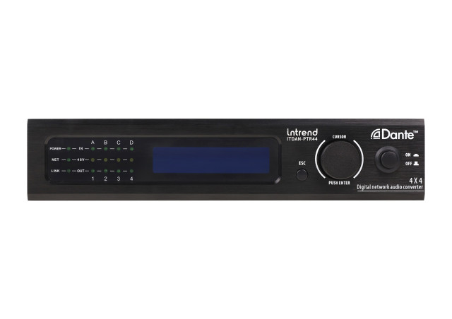 Intrend ITDAN-PTR44 - 4x4-канальный сетевой аудиоинтерфейс Dante, который может получать доступ к аналоговым аудиосигналам, преобразовывать их в цифровые сигналы и передавать на любое устройство Dante audio network по протоколу Dante. Обеспечивает высококачественную передачу звука на большие расстояния с низкой задержкой.